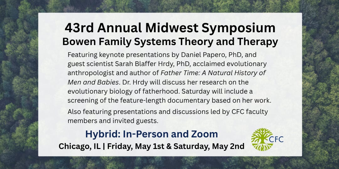 Established in 1984 with Dr. Murray Bowen as the sole presenter, the symposium has evolved to feature Dan Papero, PhD, as the primary speaker and, since 1990, a guest scientist each year. The event ensures Bowen family systems theory remains grounded in the natural sciences by inviting experts from fields such as neuroscience, evolutionary biology, and primatology. Single or two day tickets available:
